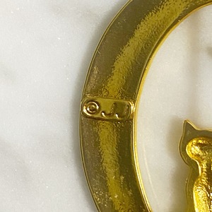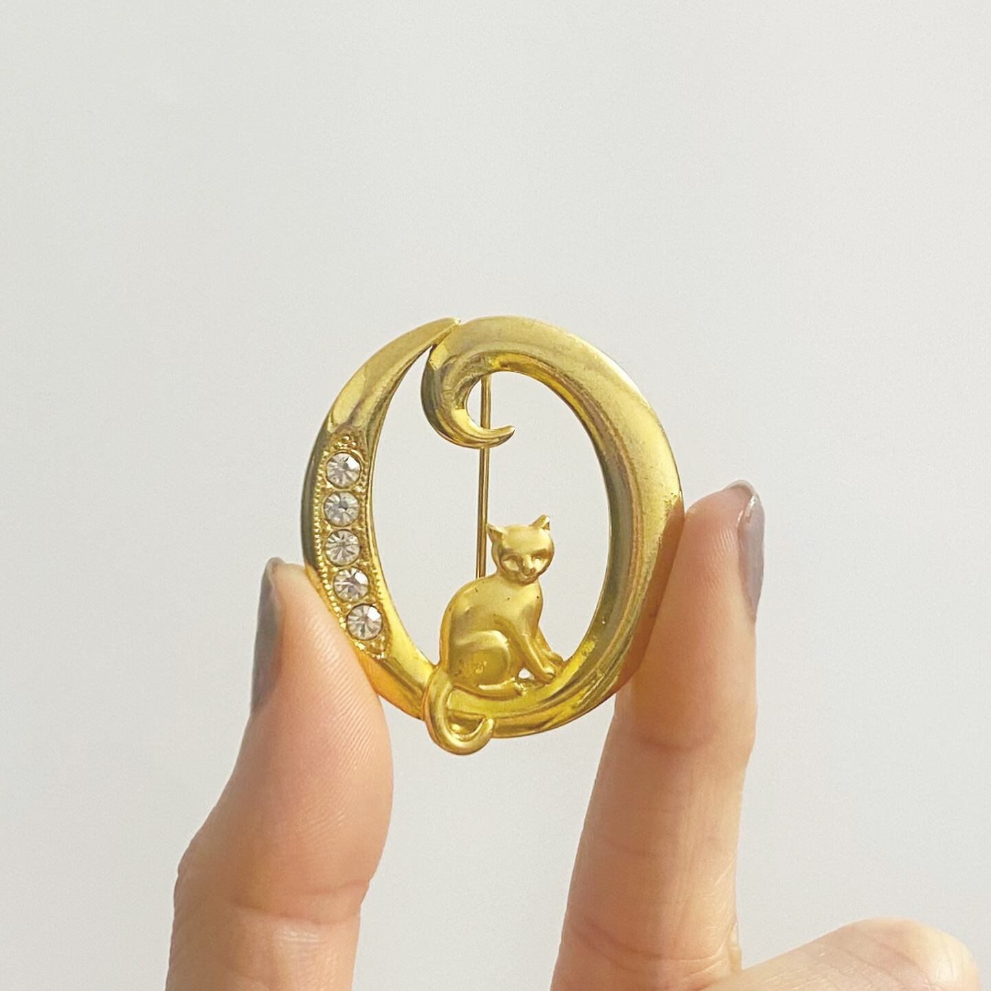 JJのアルファベットのOのようなサークルの中にちょこんと座るネコがかわいらしいヴィンテージブローチです。