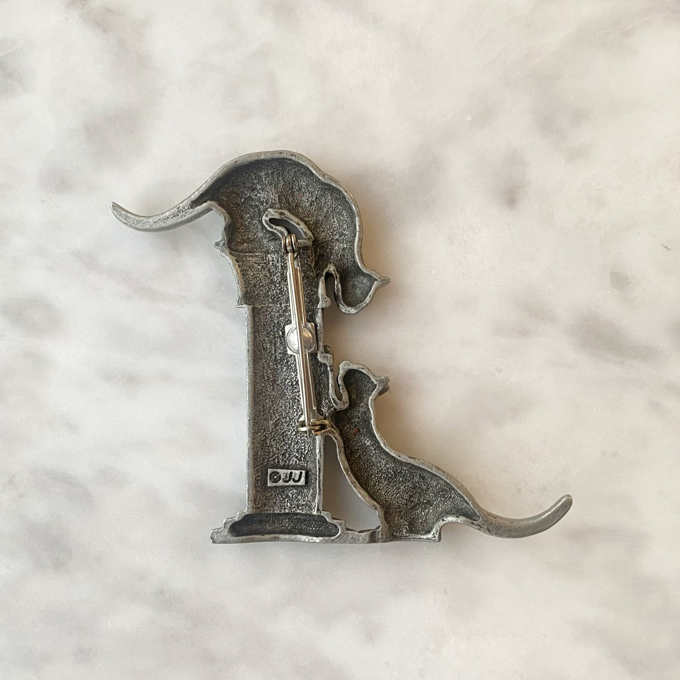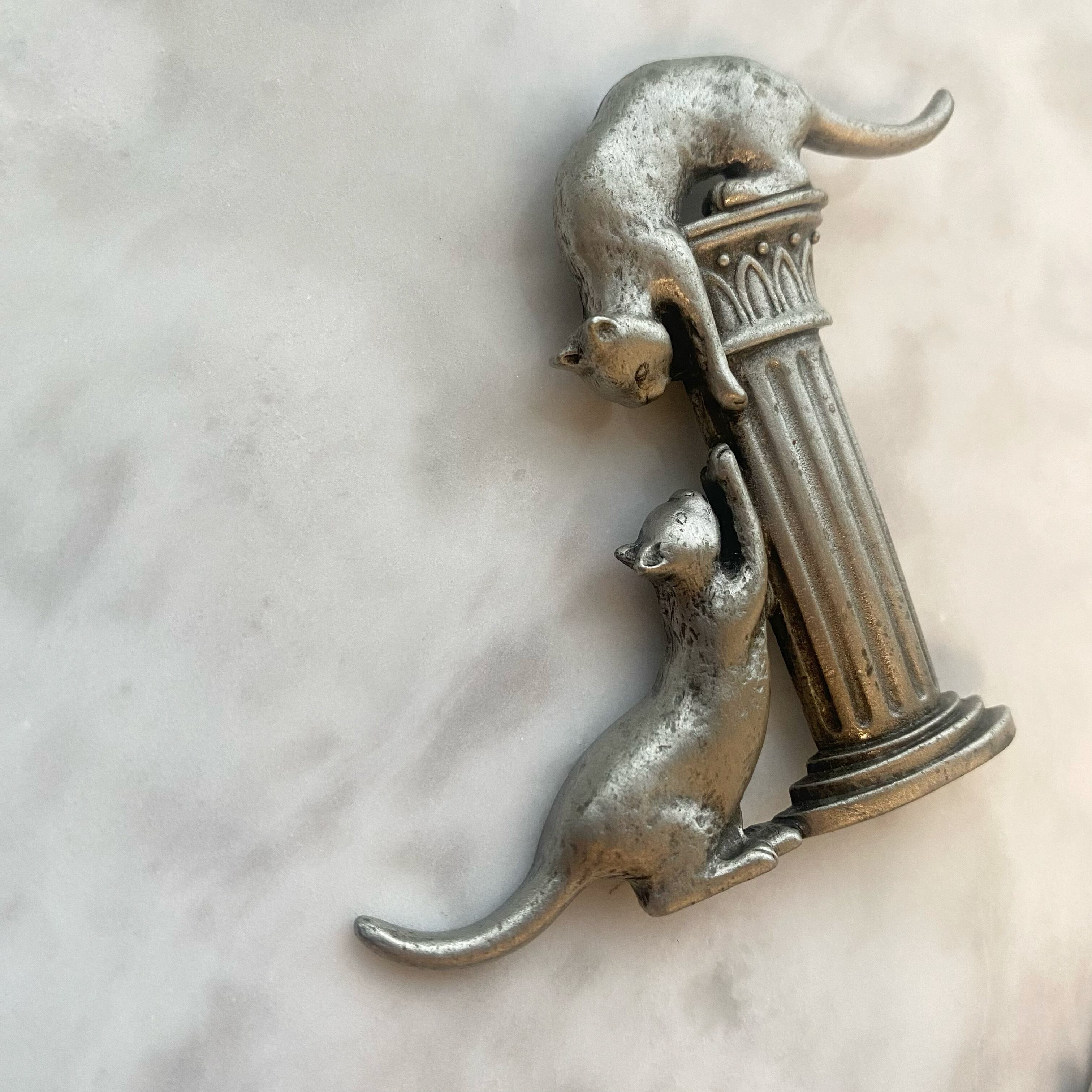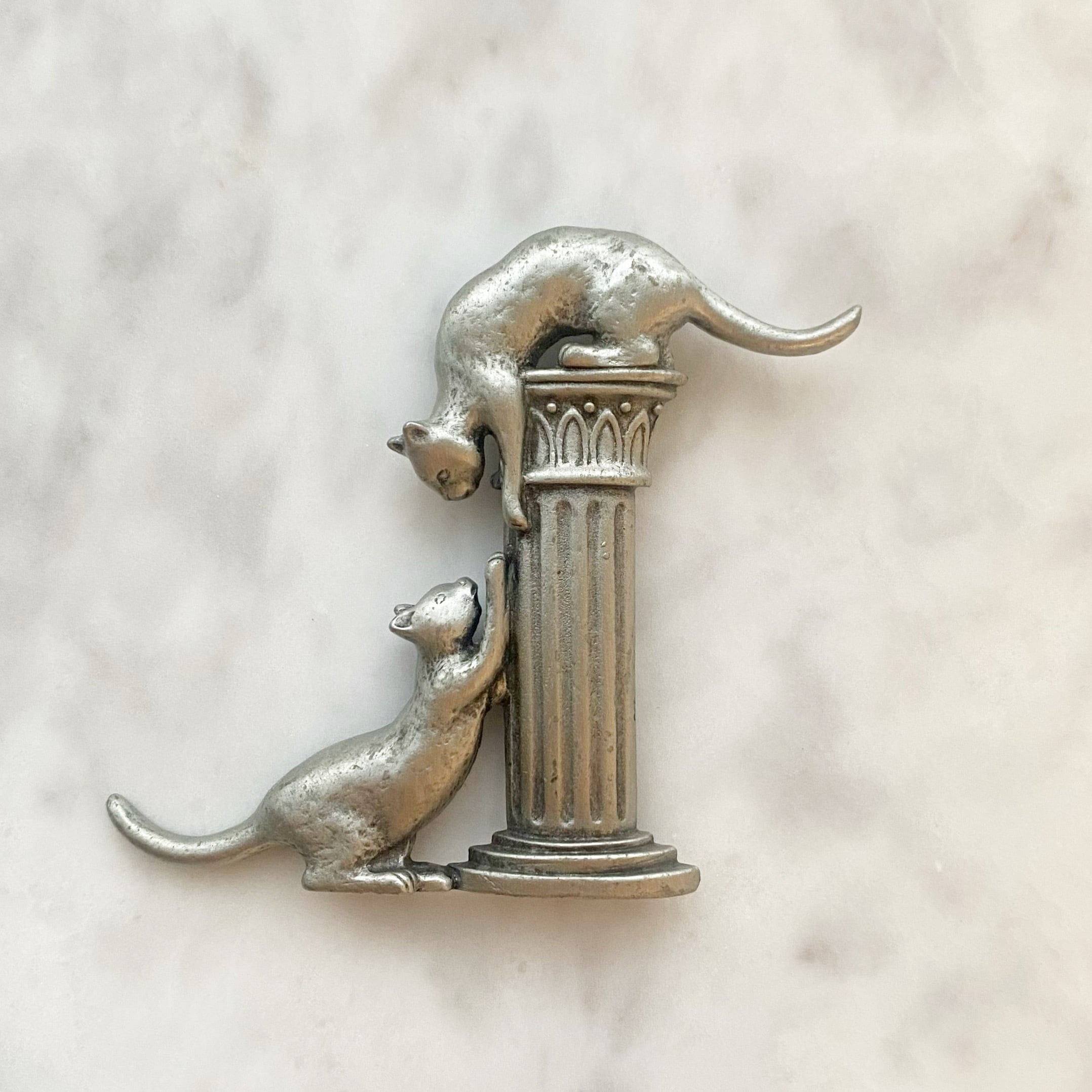 JJの柱で遊ぶ2匹のネコのヴィンテージブローチです。