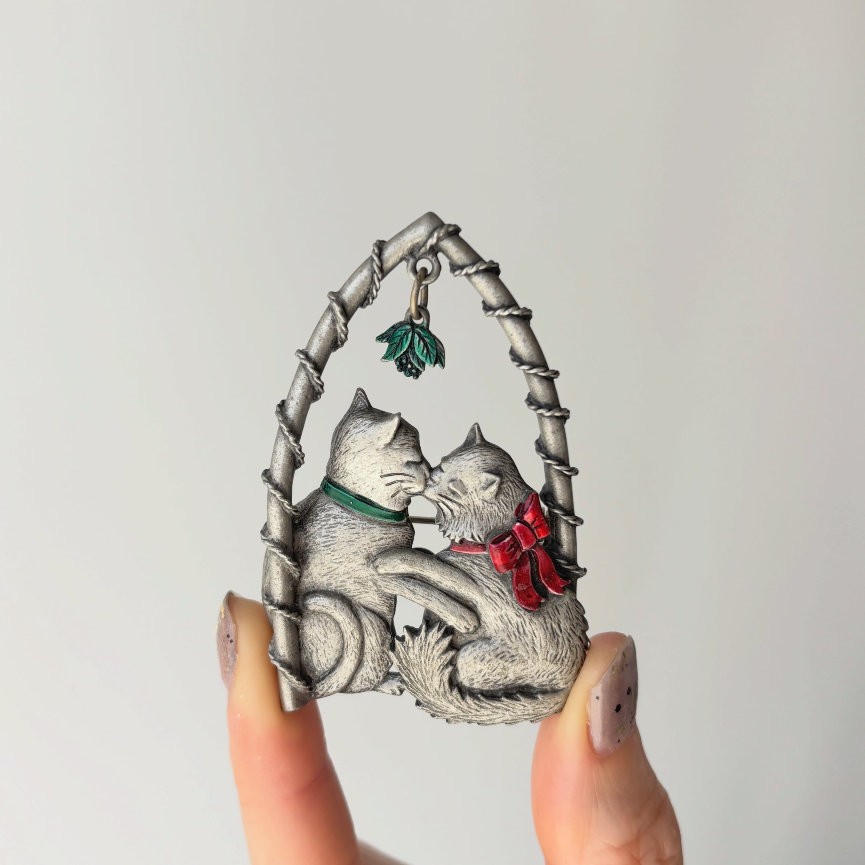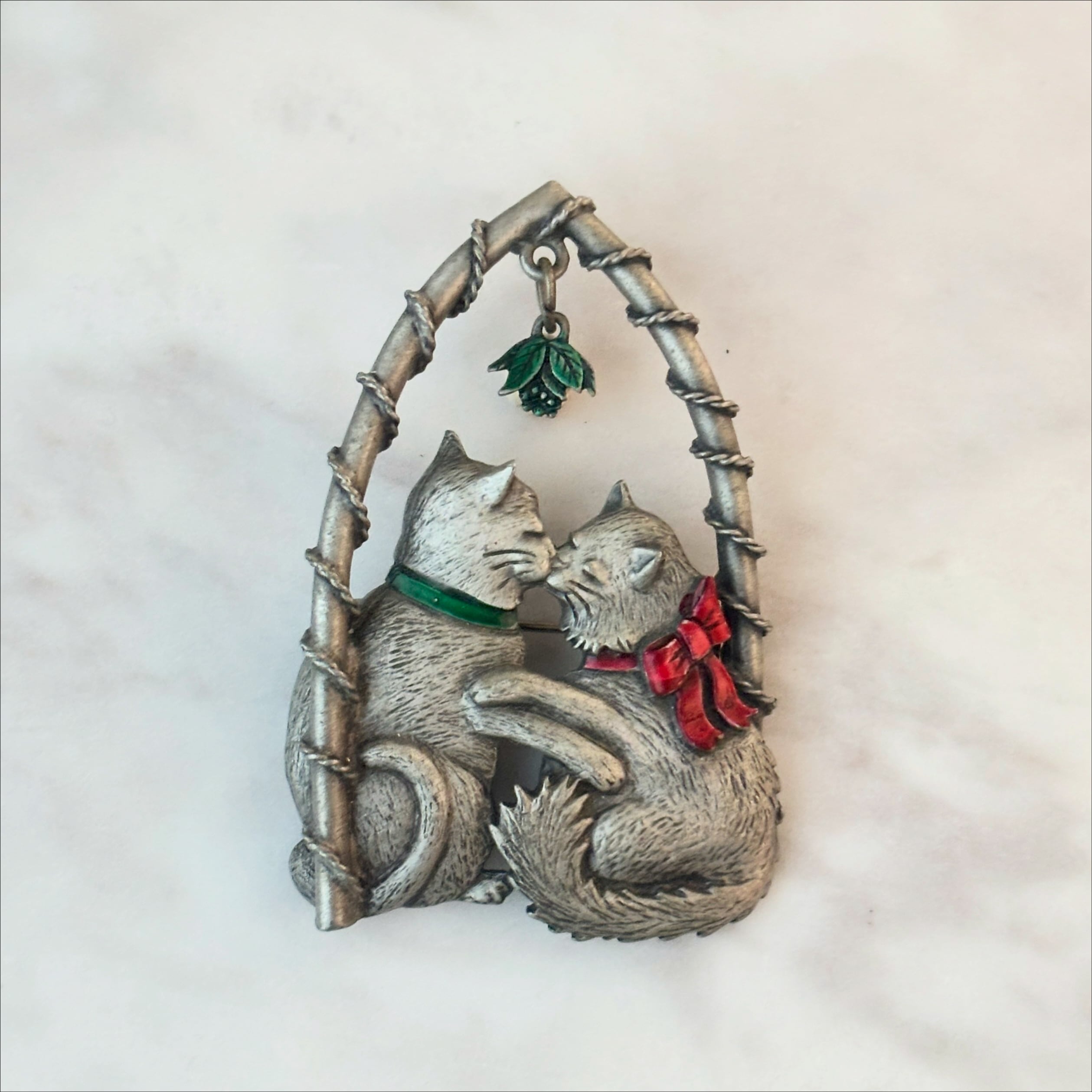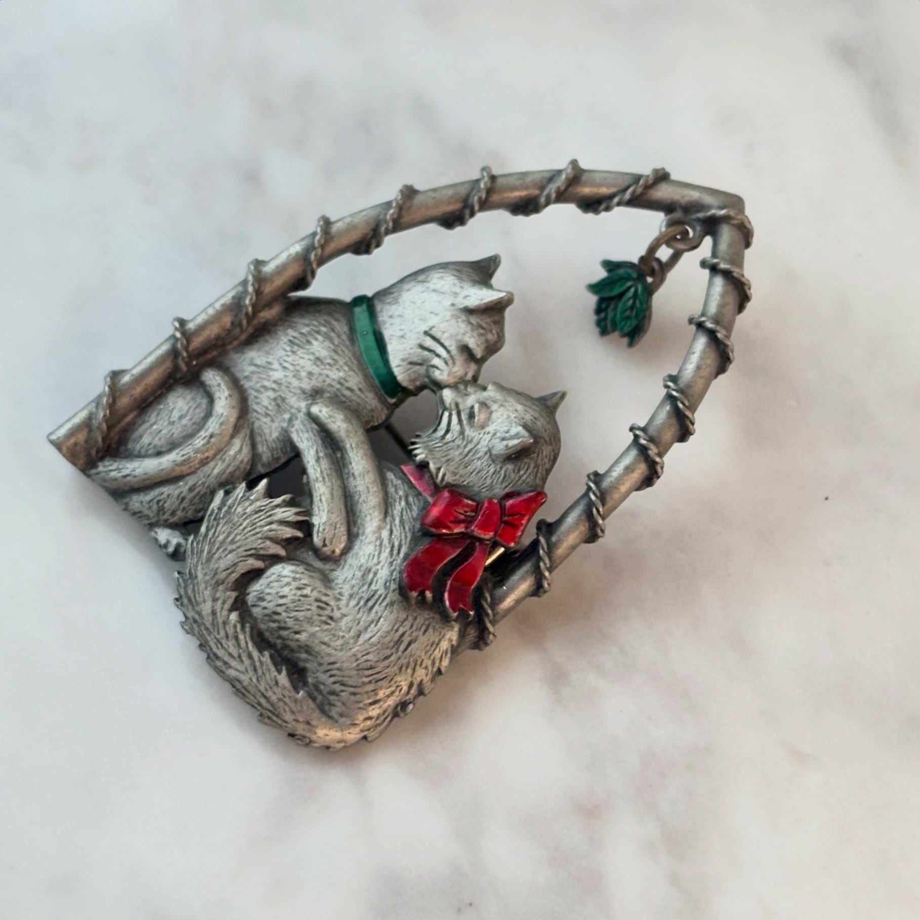 JJのキスをする2匹のネコのヴィンテージブローチです。