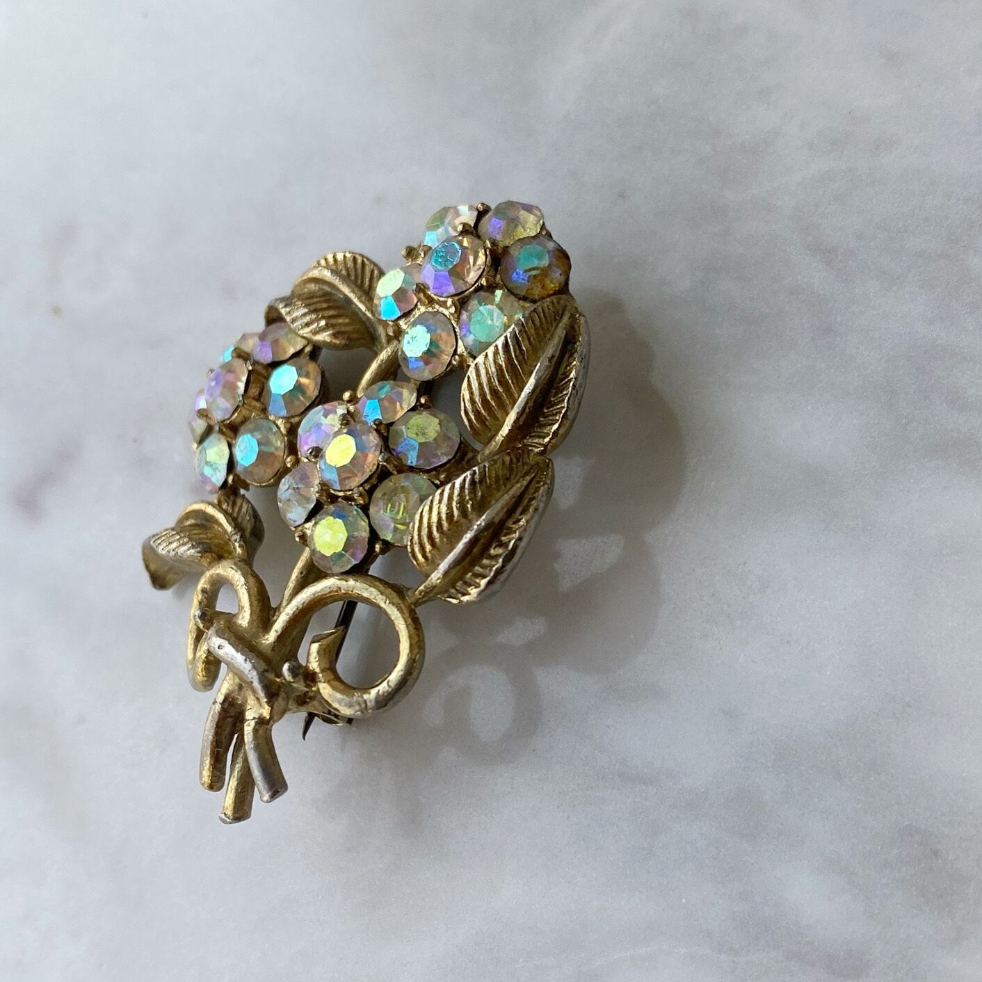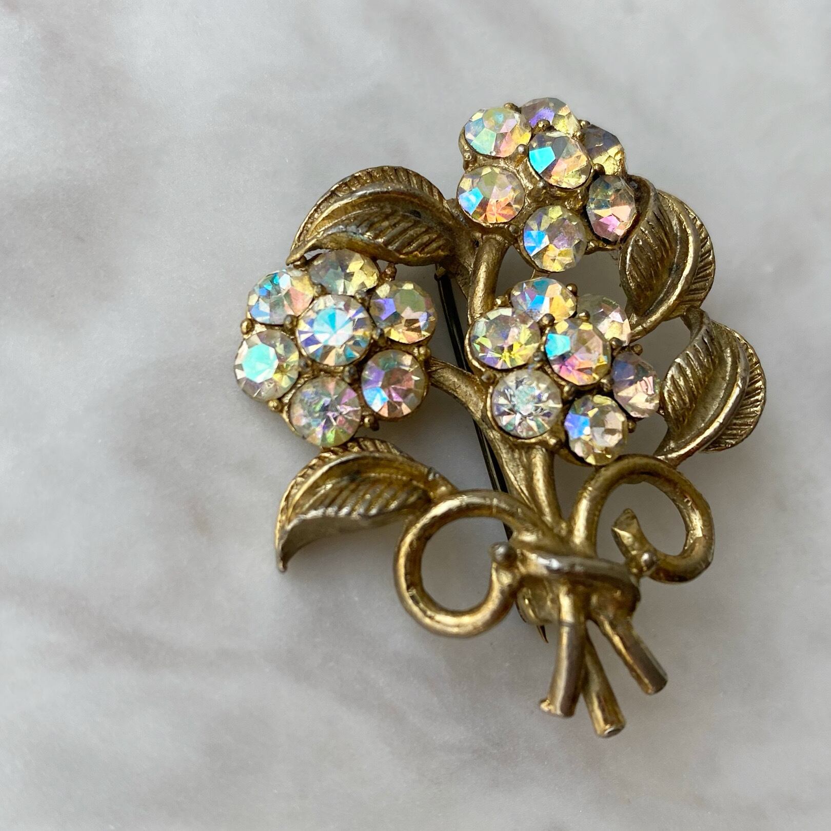 オーロララインストーンがキラキラと美しいブーケのデザインのヴィンテージブローチです。